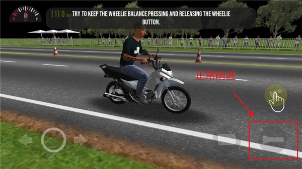 屏幕右侧最左边的动作是摩托车抬头,要是和驾驶键一起按,就能做出抬头前进的特技动作。