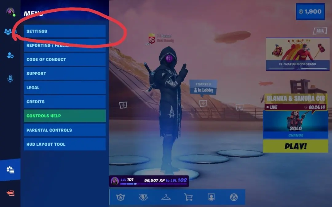 首先,打开堡垒之夜,找到设置