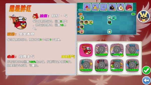 这里是选择出战道具与小鸟的战斗配置界面,你可以在此进行相关选择。