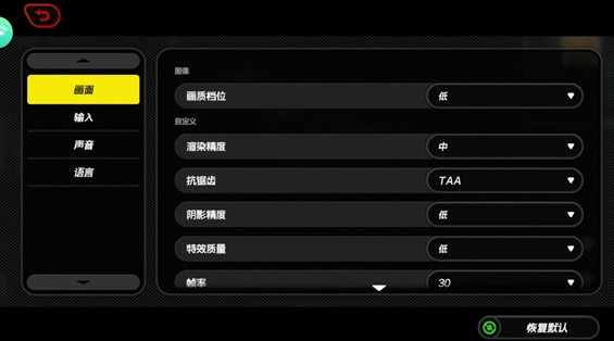 在界面右侧点击齿轮按钮即可进入设置界面,在这里可以对游戏的画面、操控方式、声音以及语言等各项内容进行调整。