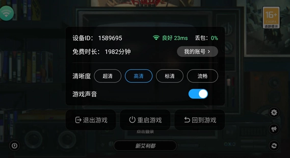 点击左侧的绿色按钮,就能查看你所拥有的免费时长以及云游戏账号的相关信息。