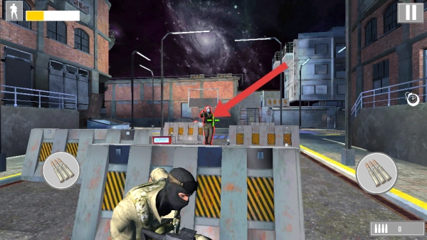 可以先借助场景里的防护栏来充当掩体:角色藏在防护栏后方,既能有效避开敌人的火力攻击,又能留意前方敌人的方位,以便抓住合适的射击机会。