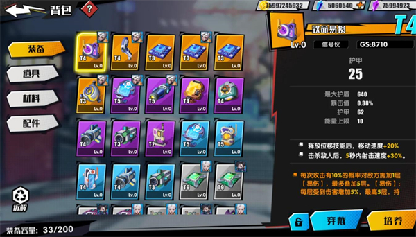 关于装备选择,60级之前不用太纠结,优先选属性数值高、孔位数量多的就行;等60级解锁套装系统后,就根据自己玩的流派来凑对应的套装——不用强求凑齐6件,也可以两件两件地搭配,利用散件的属性过渡,最终搭配成4+2的组合就好,毕竟每件装备的加成效果不同,具体怎么搭可以根据自己的需求来调整。