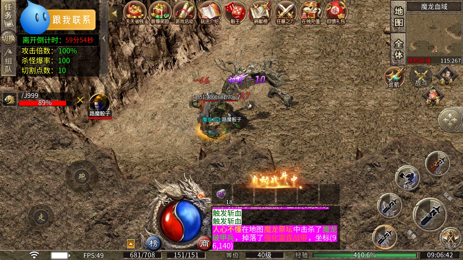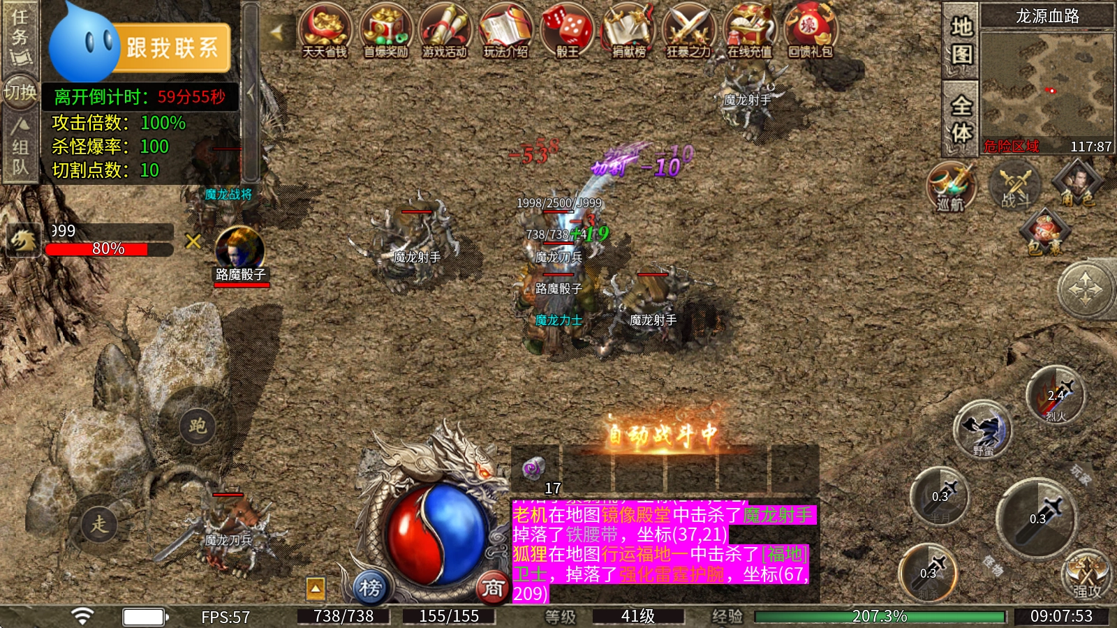 惊喜首爆奖励正等你前来争夺,开天、战神系列、火龙系列等装备一旦爆出,就能领取丰厚的元宝和经验,抢到绝对就是赚到。