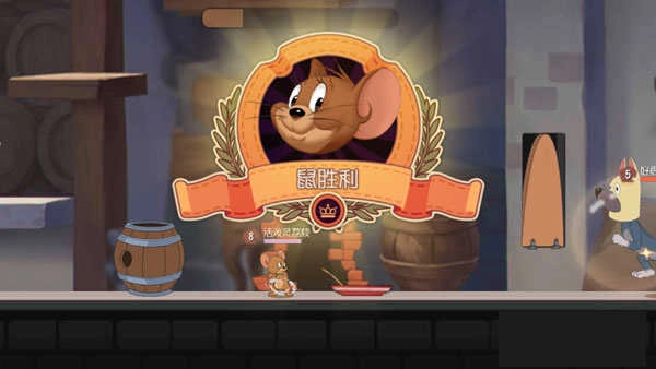 玩家需要收集5个奶酪,全部收集完成后,地图的某个随机位置会出现一个墙洞。玩家得利用地面上的雪球、果盘和盘子来击碎这个墙洞,一旦墙洞被打破,无论是队友还是自己进入其中,就能赢得胜利。