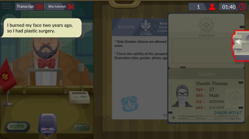 边境警察模拟器是一款沉浸式的边境执法模拟游戏,它让你以边境巡逻官的身份,肩负起保卫国家安全的重任。这款游戏不只是简单的文件检查,更是对责任、判断与人性的考验。你要细致检查每位乘客的姓名、体重、身高、护照及其他文件的有效期,并与本人信息进行比对。玩家的每一个决定都可能关乎国家安全,保持高度警觉和准确判断至关重要。