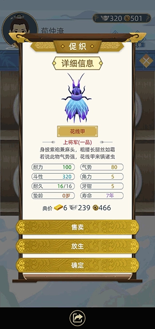 注:卖蛐蛐是发不了财的前期还是要花点时间打比赛。