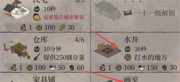 2、接下来,在建造过程中,水井和画室的收益最高,前期可以在雕像的覆盖范围内多修建一些水井,等解锁画室后再建造画室。