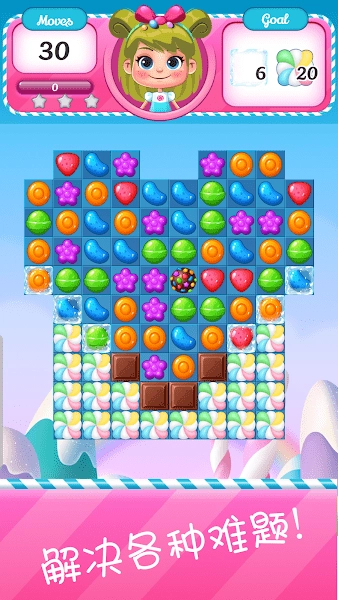 2.强力助推手段:开启包裹糖果、条纹糖果、彩色炸弹与棒棒糖等特殊糖果,凭借智慧与敏捷打造精彩的消除连击。