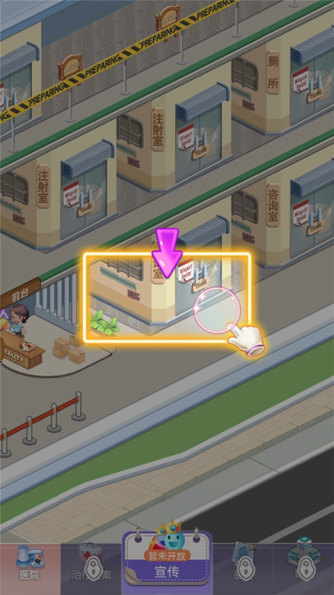 5、当金币储备充足时,点击已建成的咨询室,解锁内部设备,以此来提高医生的诊疗效率。