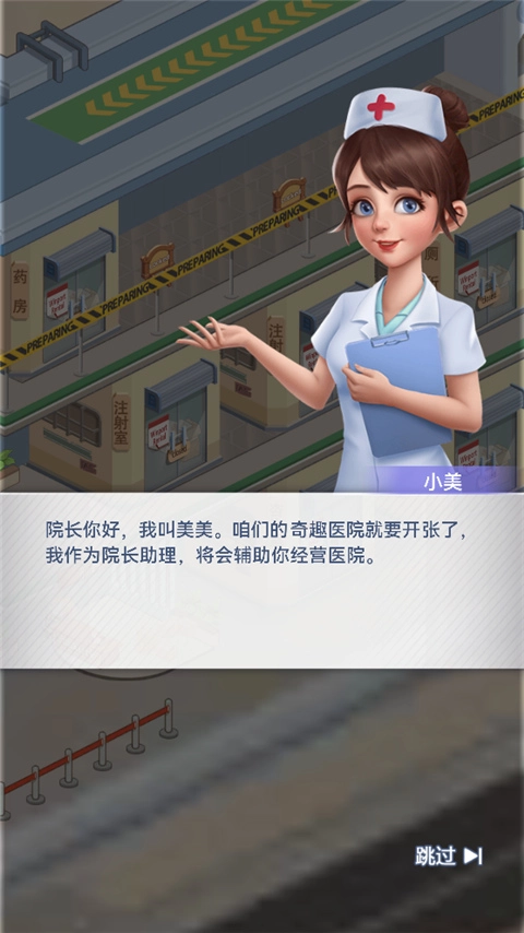 1、启动《圈了个地》游戏后,可选择跳过初始剧情,直接进入医院建设环节,以此节省前期等待时间。