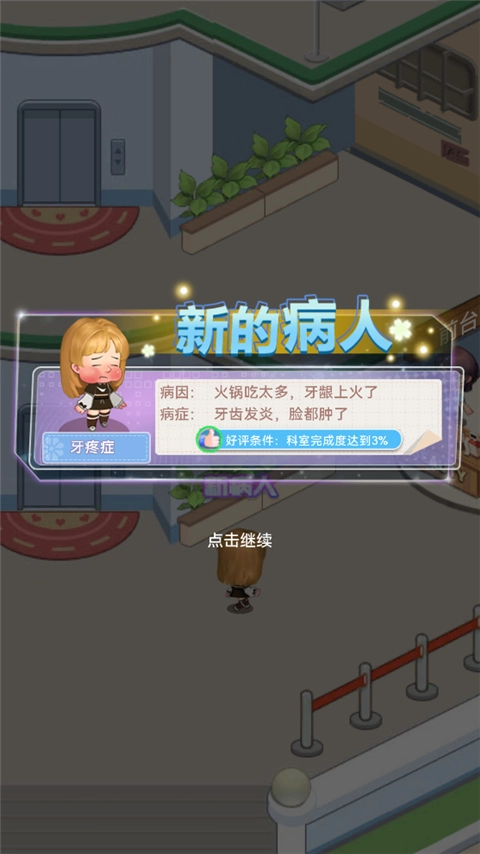 持续拓展科室的种类与功能,是提升医生专业技能以及患者康复率的关键,同时也是游戏后期运营的核心策略。