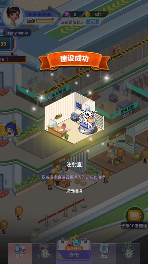 2、玩家需要为医院建设和扩建各类设备与建筑设施,以便患者们能获得更好的治疗。