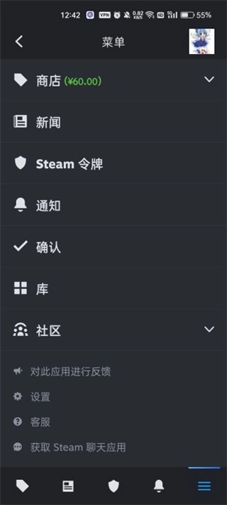 1、启动手机版Steam,登录Steam账号。