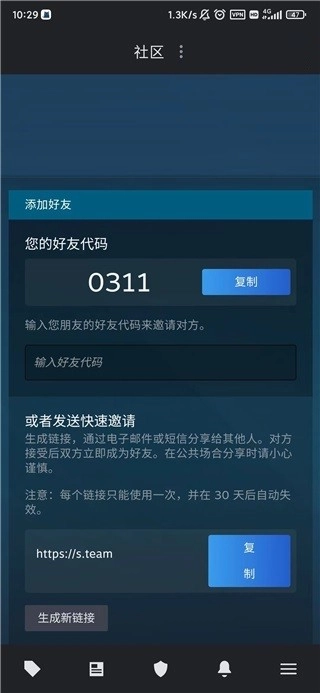4、要是依旧不会操作,还能直接找到快速邀请的入口,这里会提供一个链接,用户只需点击该链接就能直接添加好友。