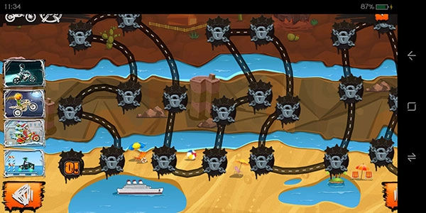 《狂野飙客3》这款横版摩托驾驶闯关游戏十分有趣。游戏里运用了许多明亮的场景与色彩丰富的配色方案,玩家通过闯关赢取奖励,就能解锁各式各样风格的皮肤,让挑战过程更具趣味性。