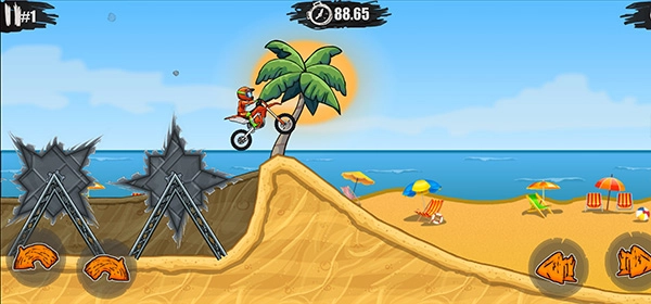 游戏里加入了多样的特技动作设计,玩家能够在空中做出翻转、车轮离地等具有挑战性的动作,以此赢得额外的高分奖励和解锁成就,游玩体验也更具趣味性。