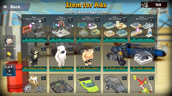 玩家点击右上角的“AWARDS FOR ADS”按钮,就能进入广告任务界面,完成一定数量的广告观看后,就能领取对应的奖励。