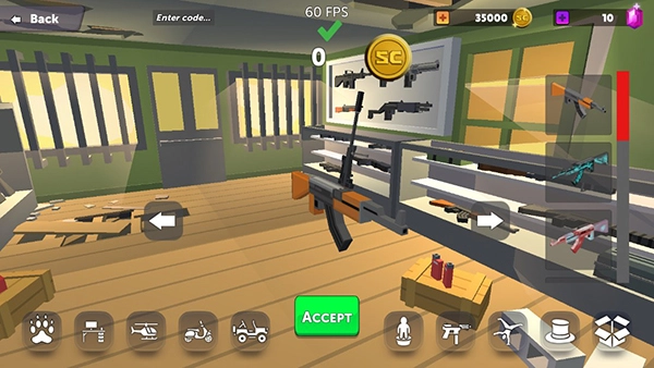 玩家点击左侧的SHOP按钮就能进入商店,在那里可以购买武器、车辆之类的物品。