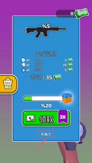 4、奖励领取方式:通过关卡后,点击“领取”按钮,即可获得游戏奖励。
