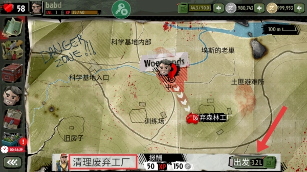 3、在地图界面选择【清理废弃工厂】任务,点击【出发】按钮前往任务区域。