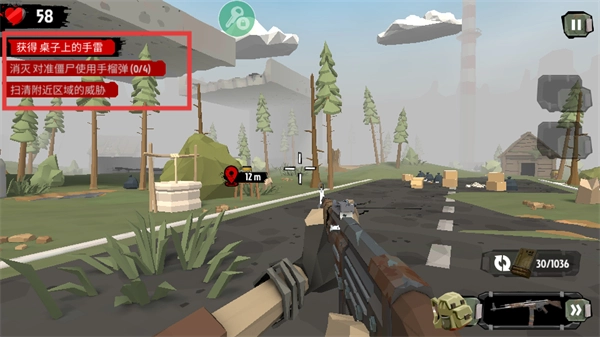 4、进入任务区域后,完成【获得桌子上的手雷】【消灭对准僵尸使用手榴弹(0/4)】【扫清附近区域的威胁】等任务目标。