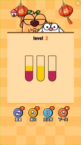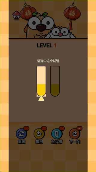 2.游戏采用萌趣卡通画风,色彩明快柔和,试管造型简洁直观,营造轻松无压力的游戏氛围。