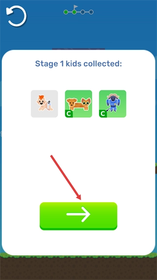 3、进入对应的结算界面,点击绿色箭头按钮,可进入后续的关卡。