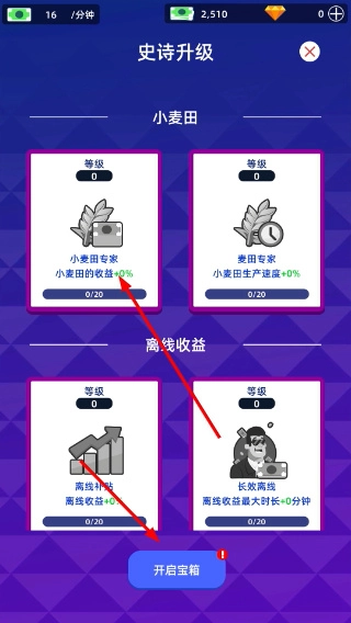 3、接着进入史诗升级可以查看小麦田的升级内容。