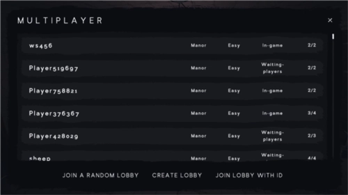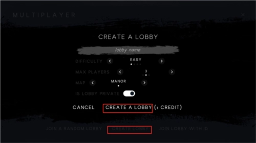 也可以点击create lobby,选好房间的难度和人数后,点击创建房间就可以了。