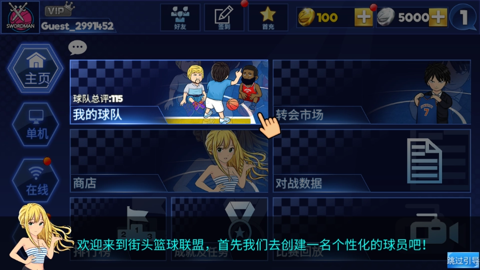首先,玩家在本站下载并安装好游戏后,打开进入游戏。初次进入时会有一段指引,玩家可以先按照指引进行操作,这样能帮助大家初步熟悉游戏玩法;之后点击【我的球队】,创建一名具有个性化特征的球员。