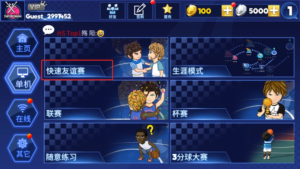装备好后,先来练习一下,点击【快速友谊赛】;