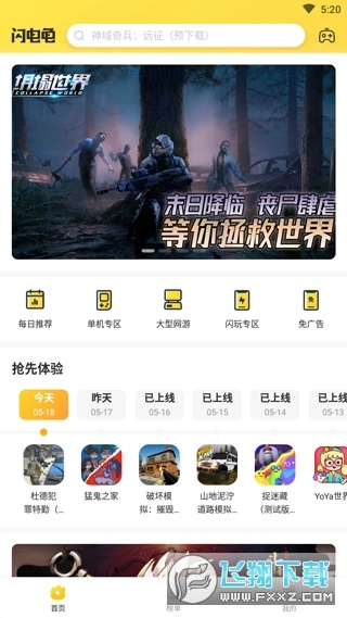 打开闪电龟,在首页可以看到很多爆款游戏;
