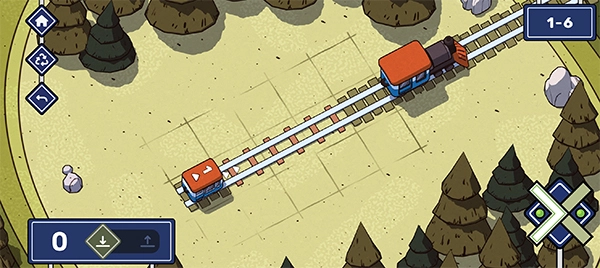 这一关左右两侧各有一节火车,首先得弄清楚两节火车的行驶顺序,接着要铺设两段铁轨,关键是得防止它们同时抵达导致相撞。第二段铁轨可以在第一段铁轨的线路基础上绕上一圈,这样就能完美解决这个问题了。