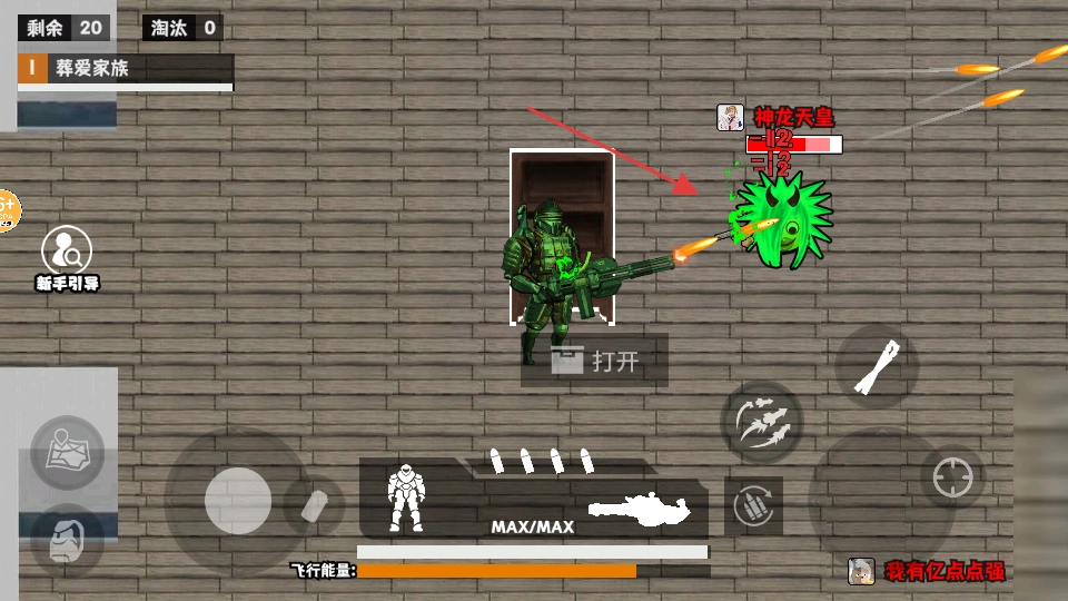 操控机甲对绿色怪物发起攻击,要留意弹药余量和飞行能量,成功击败怪物后就能打开物资箱收集资源。