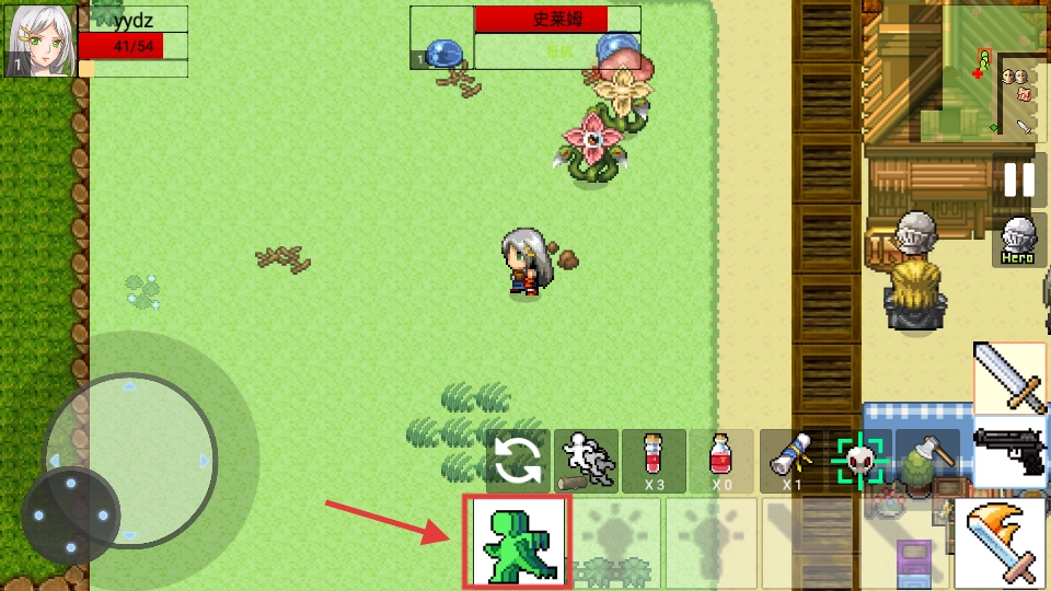 点击绿色图标,就能触发变身效果,以此提升战力来应对史莱姆和花朵类型的怪物。