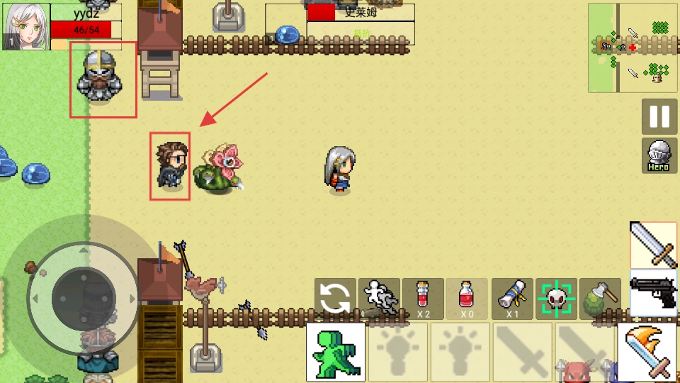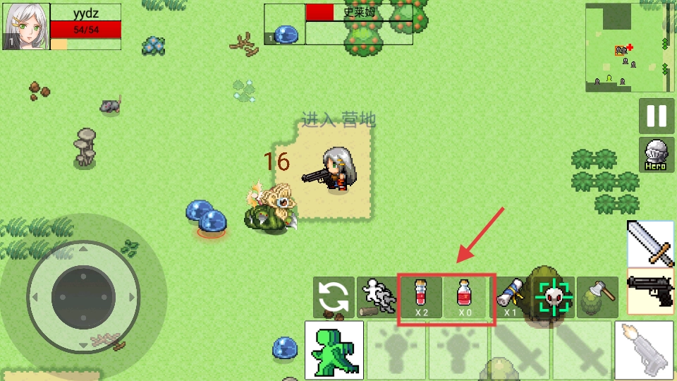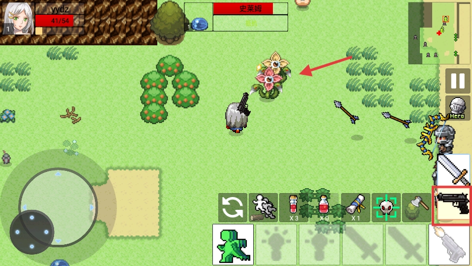 切换【手枪】武器,瞄准【花朵】-【史莱姆】怪物进行射击,利用远程优势来规避近战可能带来的风险。