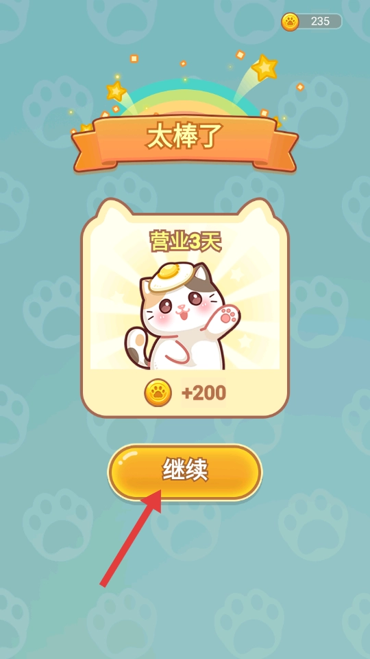 完成营业后点击【继续】按钮,领取对应的奖励,之后就可以继续经营店铺,迎接新到来的顾客。