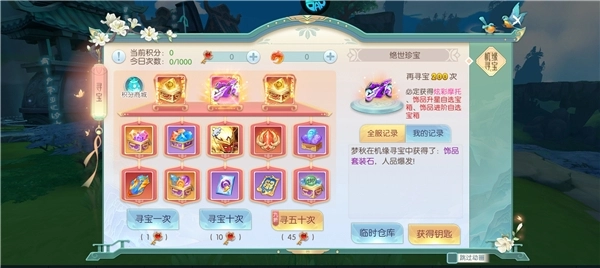 2、寻宝玩法中有着丰富的宝物,花费寻宝币即可抽取这些宝物