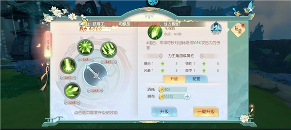 5、每一个角色都有四个技能,升级技能可以让技能效果更好