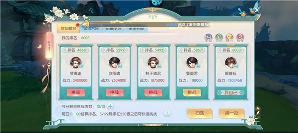 3、游戏提供了群仙擂台、试剑大会等PVP玩法,玩家可以挑战真人对手