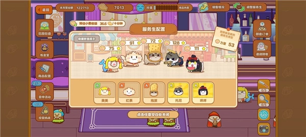 1、每天接待顾客能获取不少鱼饼干(务必按照顾客的喜好来提供餐食,要是弄错了会错过很多福利!!!)点击顾客就能查看其喜好。