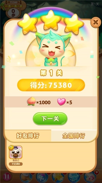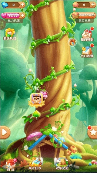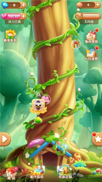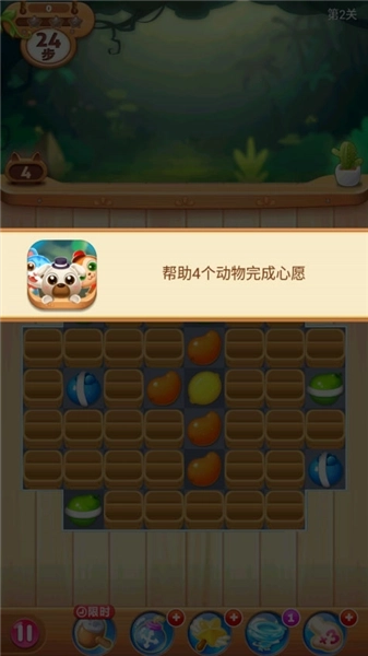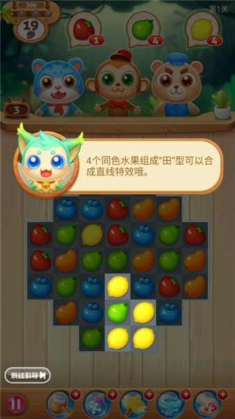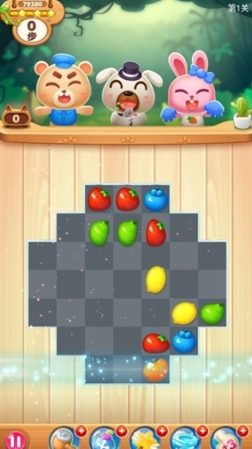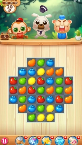3、这里的音乐与画面都绚烂华丽,萌趣十足的小动物、充满欢乐的树木,还有鲜翠欲滴的诱人水果,全都汇聚在专属于你的消除世界里!