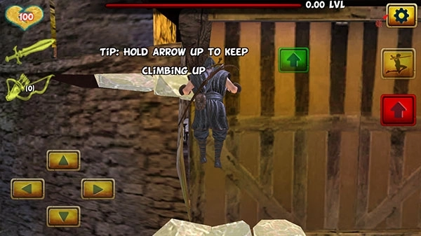 3、控制角色向前,完成刺杀和抢劫任务,右侧是跳跃和向上爬,靠近墙壁点击按钮即可触发动作。