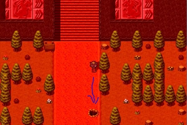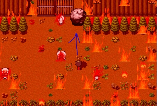 3、移动红太狼出门查看,靠近图示洞口后,点击右下角调查,获取硫磺。
