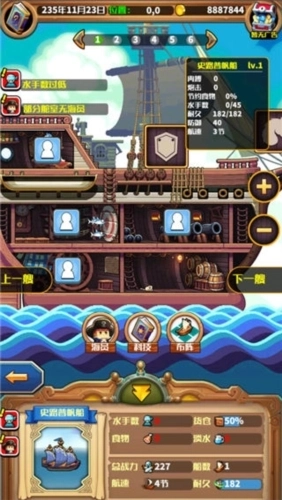 2、火炮室拉满,引擎室拉满,水手室3-4级(注意,这个版本升级船不加必要水手数,但升级水手室会涨)(肉搏船拉满),厨房看心情,船长室能升就升,仓库……总感觉7升8不值得,但这和外传不太一样……