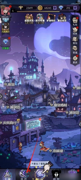 首先进入游戏主城后,点击下方的伙伴进入到伙伴列表