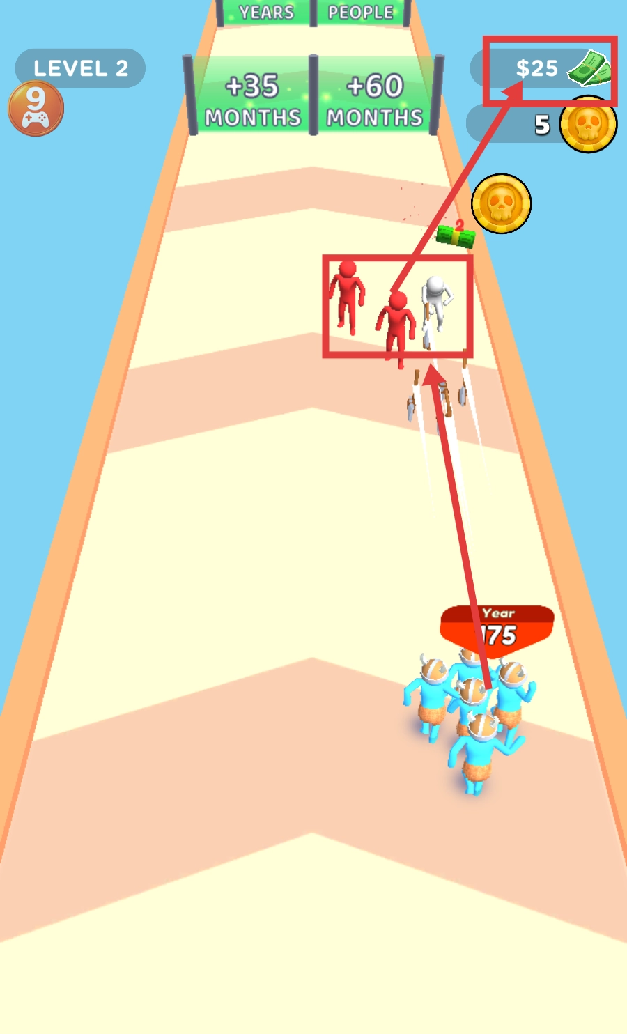 战斗时击败红色与白色的敌人,可获取【$25】资源,还能积累月份增益,以此增强文明的实力。