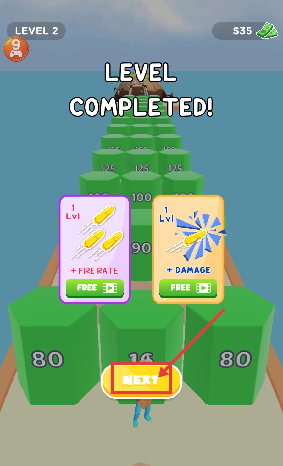 完成LEVEL-2后,点击【NEXT】按钮进入下一关,此时可以从【+FIRERATE】和【+DAMAGE】两个选项中任选其一,以此来增强战斗能力。
