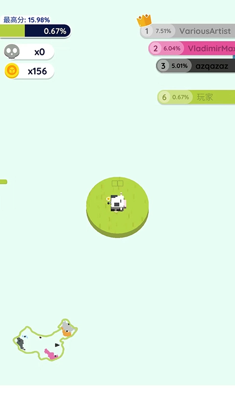 2、如图所示,能看到一个方块放置在圆圈之上,这便是你的初始领地,每位玩家都拥有专属自己的颜色。